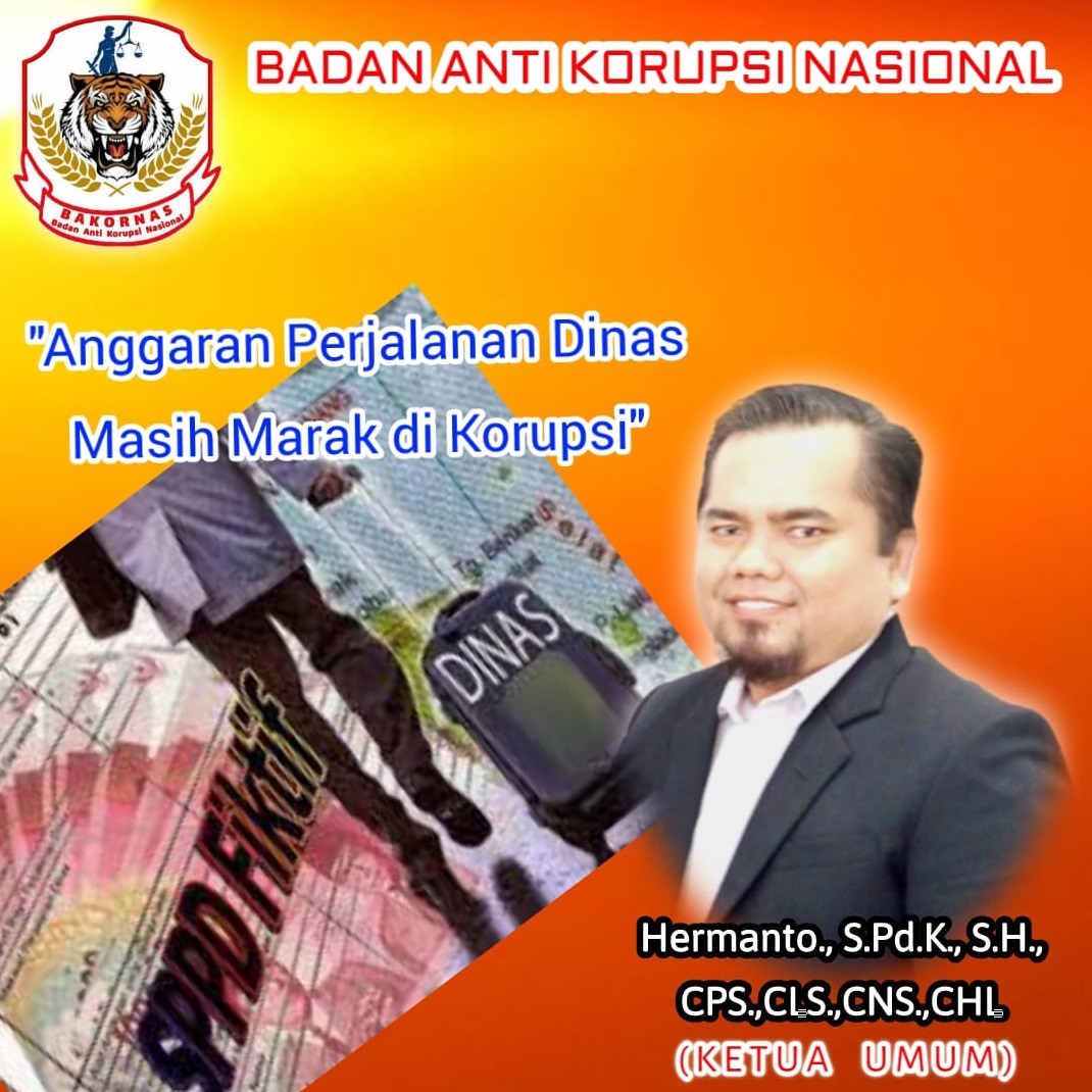BAKORNAS | Jakarta – Ketua Umum Lembaga Swadaya Masyarakat Badan Anti Korupsi Nasional (LSM BAKORNAS), Hermanto, S.Pd.K., S.H., CPS., CLS., CNS., CHL mengatakan bahwa di Indonesia masih sangat banyak dan masih sangat marak praktik – praktik korupsi dalam penggunaan anggaran perjalanan dinas atau penggunaan anggaran untuk perjalanan dinas fiktif.